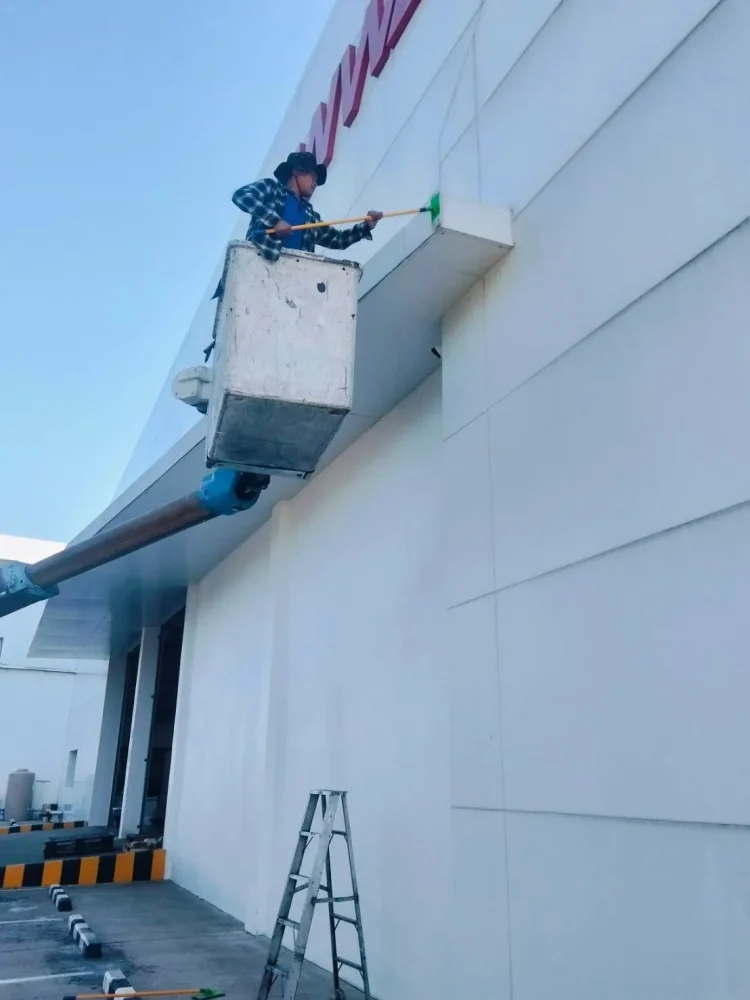 6. ทำความสะอาดกระจกภายนอกอาคารโรงงาน